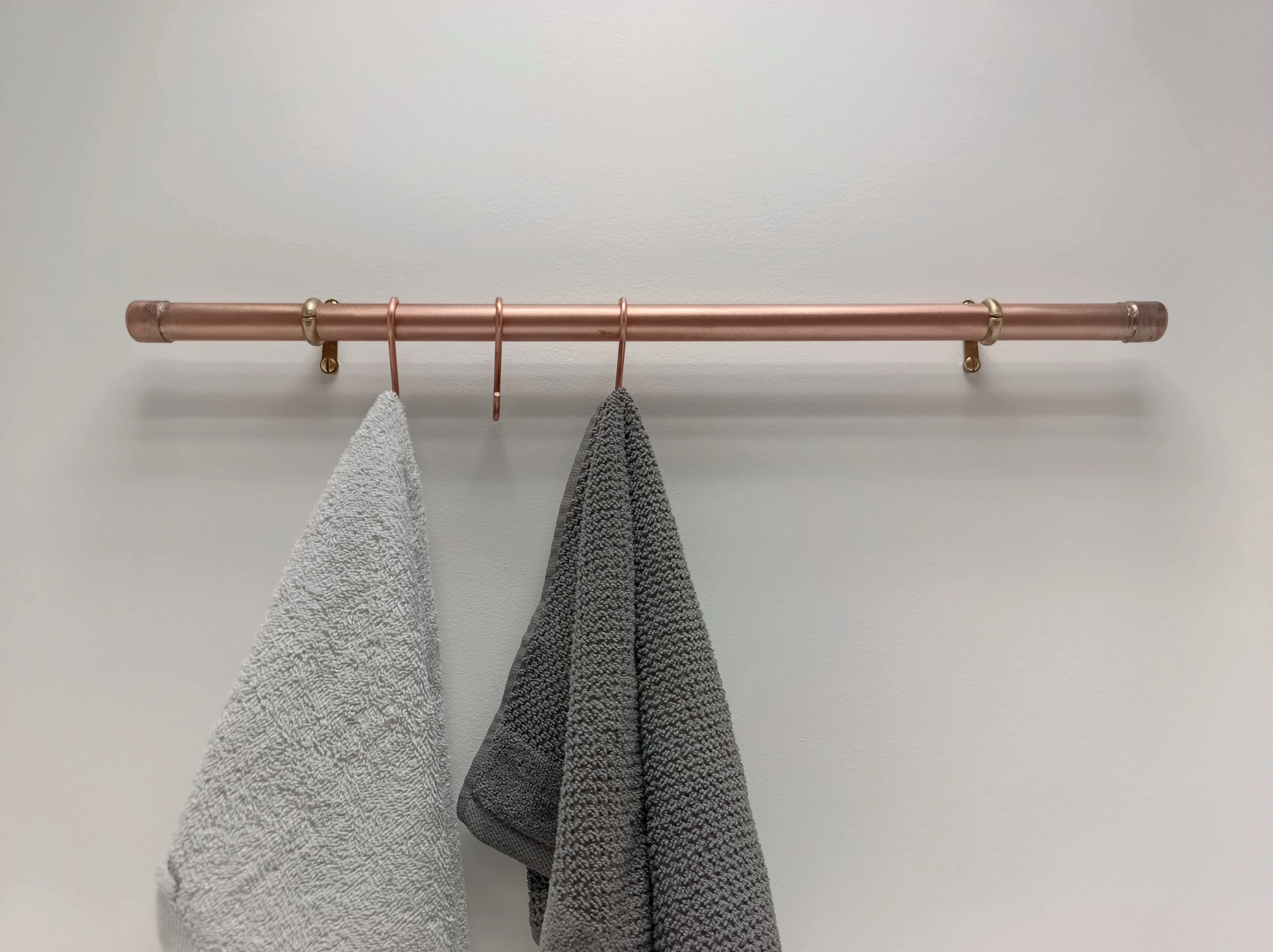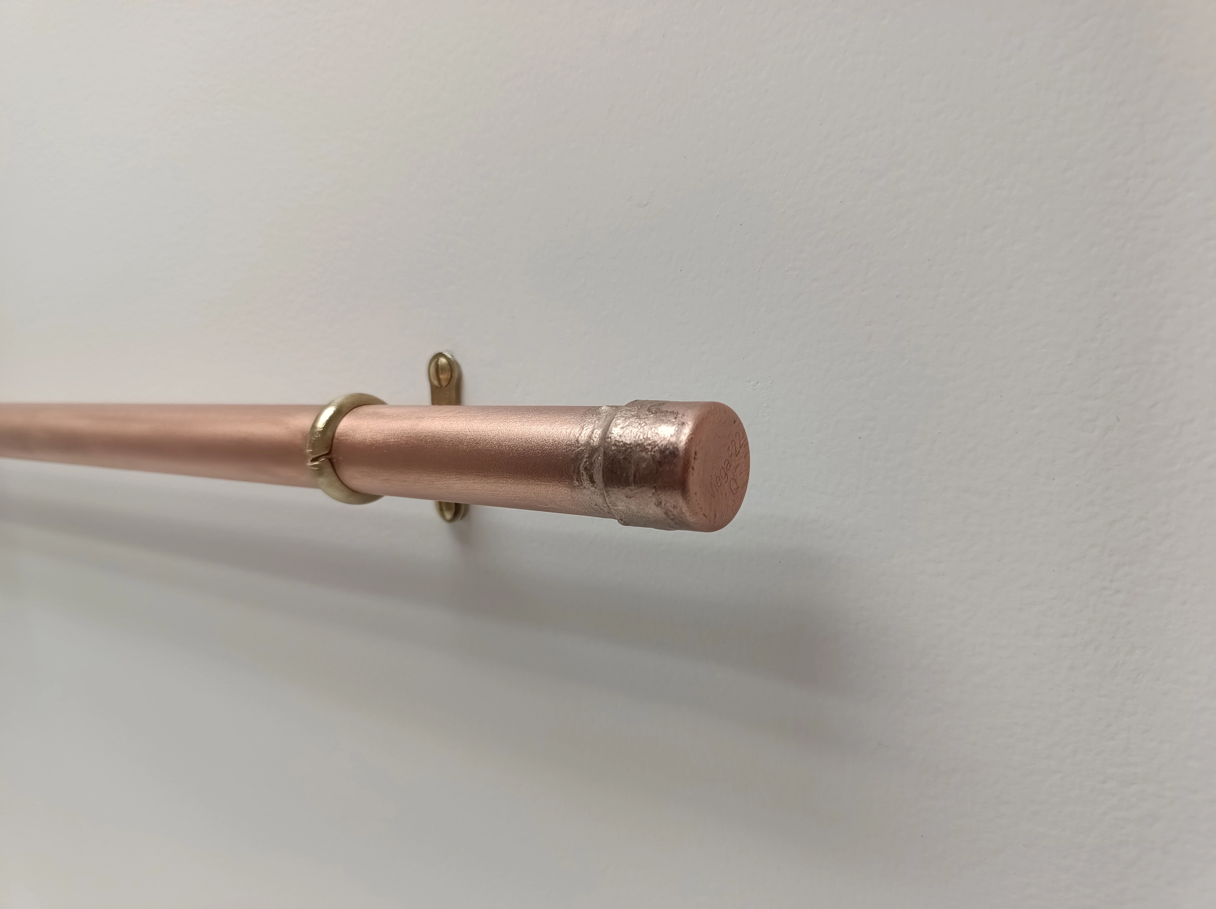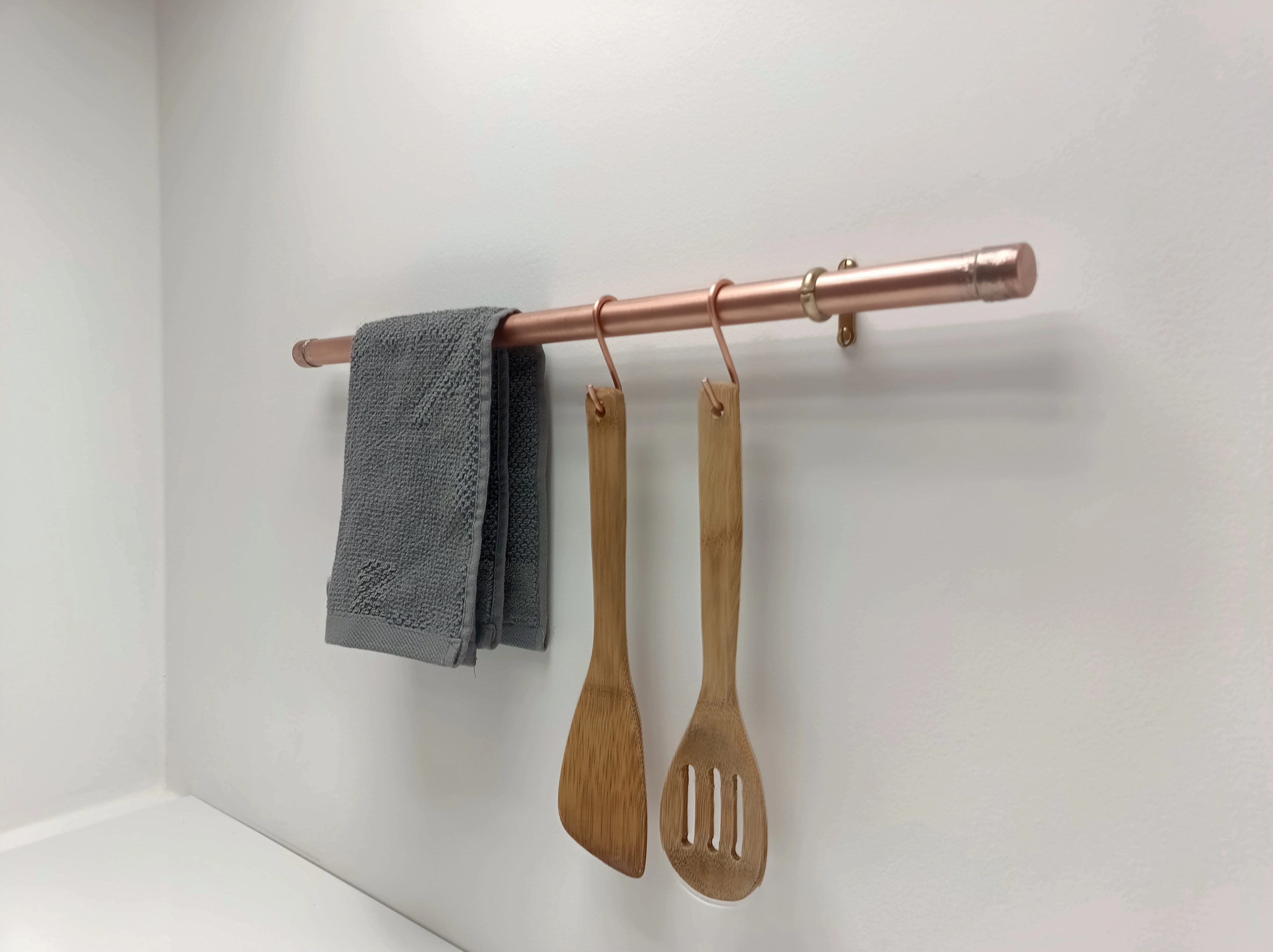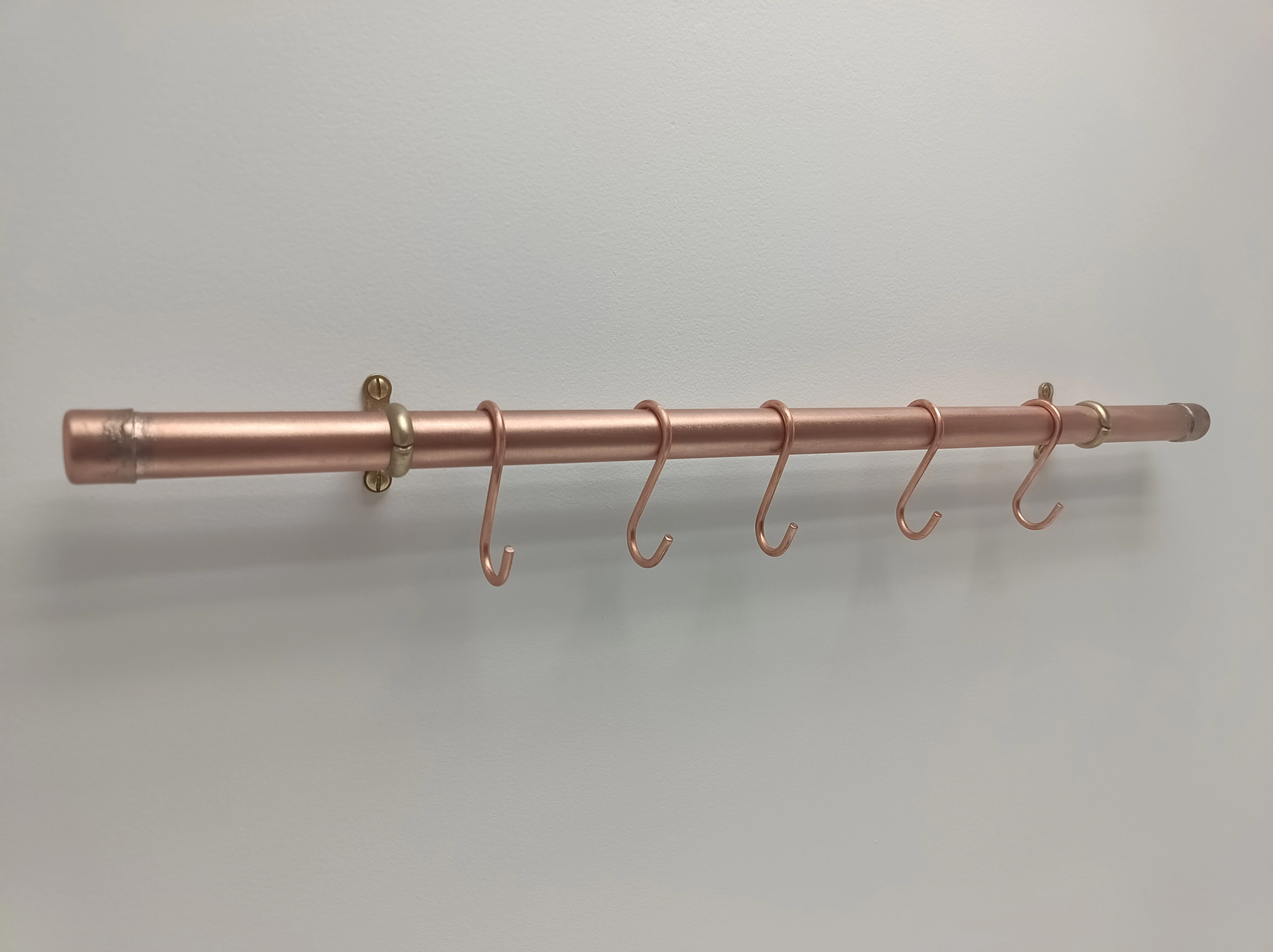 Reling kuchenny RMK/22 to propozycja dla osób ceniących solidne, estetyczne rozwiązania — grubsza rurka nadaje mu cięższy charakter, a rzemieślnicze wykonanie i ekologiczna miedź podkreślają jego wartość użytkową i dekoracyjną. Przemyślany montaż i możliwość zawieszania bezpośrednio lub z użyciem haczyków czynią RMK/22 praktycznym i stylowym elementem każdej kuchni, łazienki czy salonu.